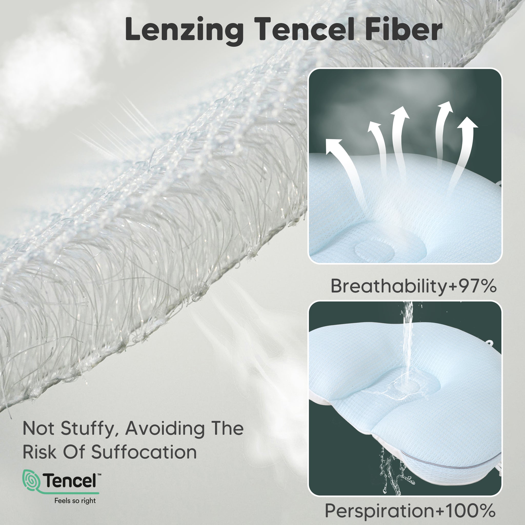The Coalahola™ Adjustable Baby Pillow features a unique 1cm neck support height for optimal spinal alignment. Its 3D honeycomb structure ensures excellent breathability, quickly absorbing heat and reducing sweat buildup for a comfortable, dry sleep. The pillow is adjustable with a drawstring and invisible buckles, providing a perfect fit and preventing flat head syndrome. The dual-sided design offers Lenzing Tencel for spring and summer, and combed cotton for fall and winter, ensuring comfort year-round.