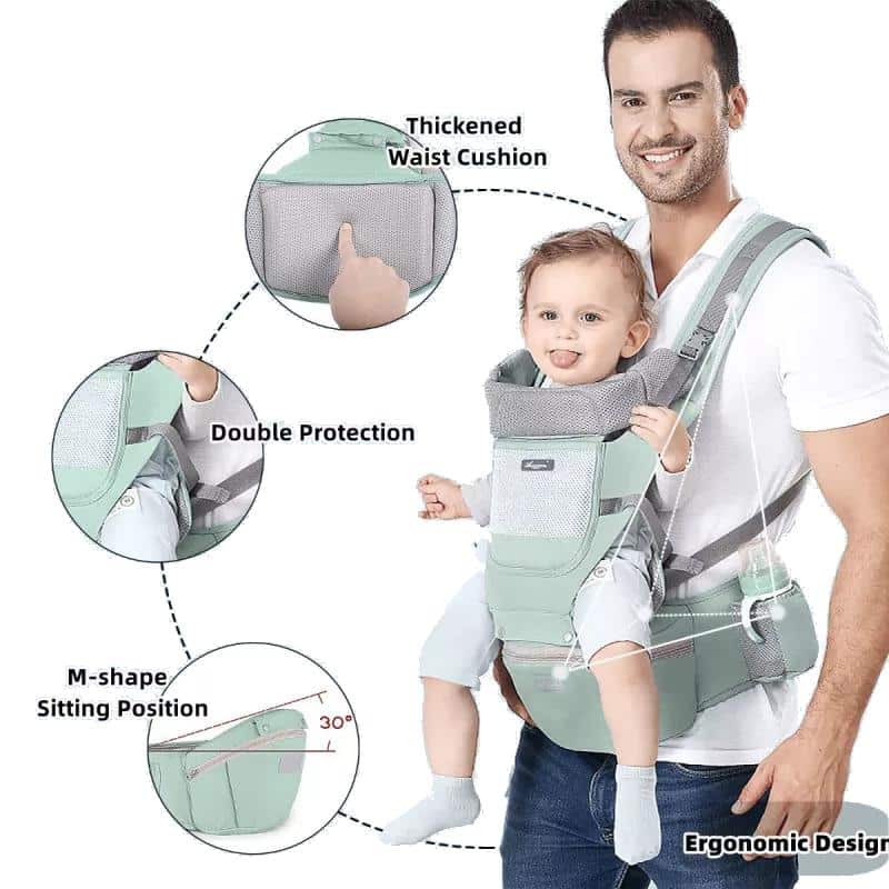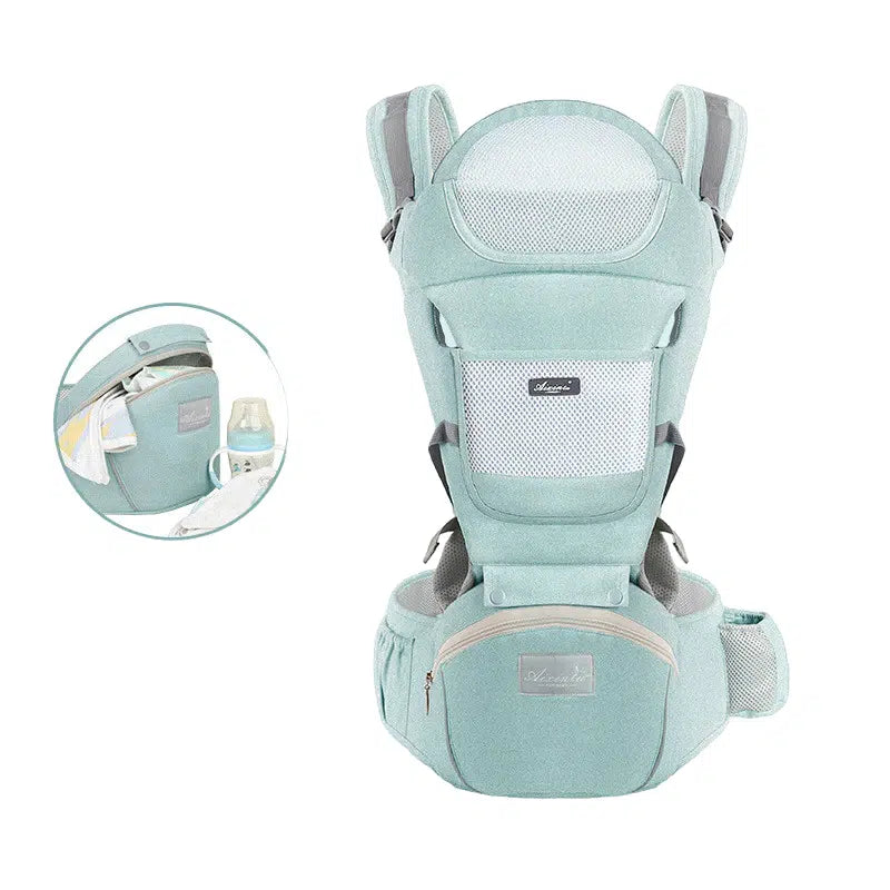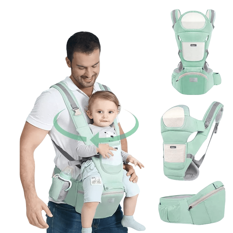 The Coalahola Nanny-Pack is a versatile baby carrier that allows for hands-free or one-handed use, ideal for busy parents. Designed for both infants and toddlers (3-36 months), it offers improved airflow and a noiseless waist belt.